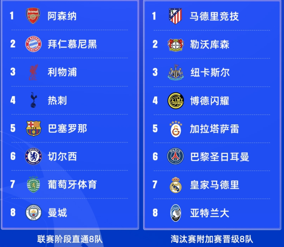 其中,英超队伍多达6支,堪称是第一赢家。意甲只有1个亚特兰大独苗,令人失望。
