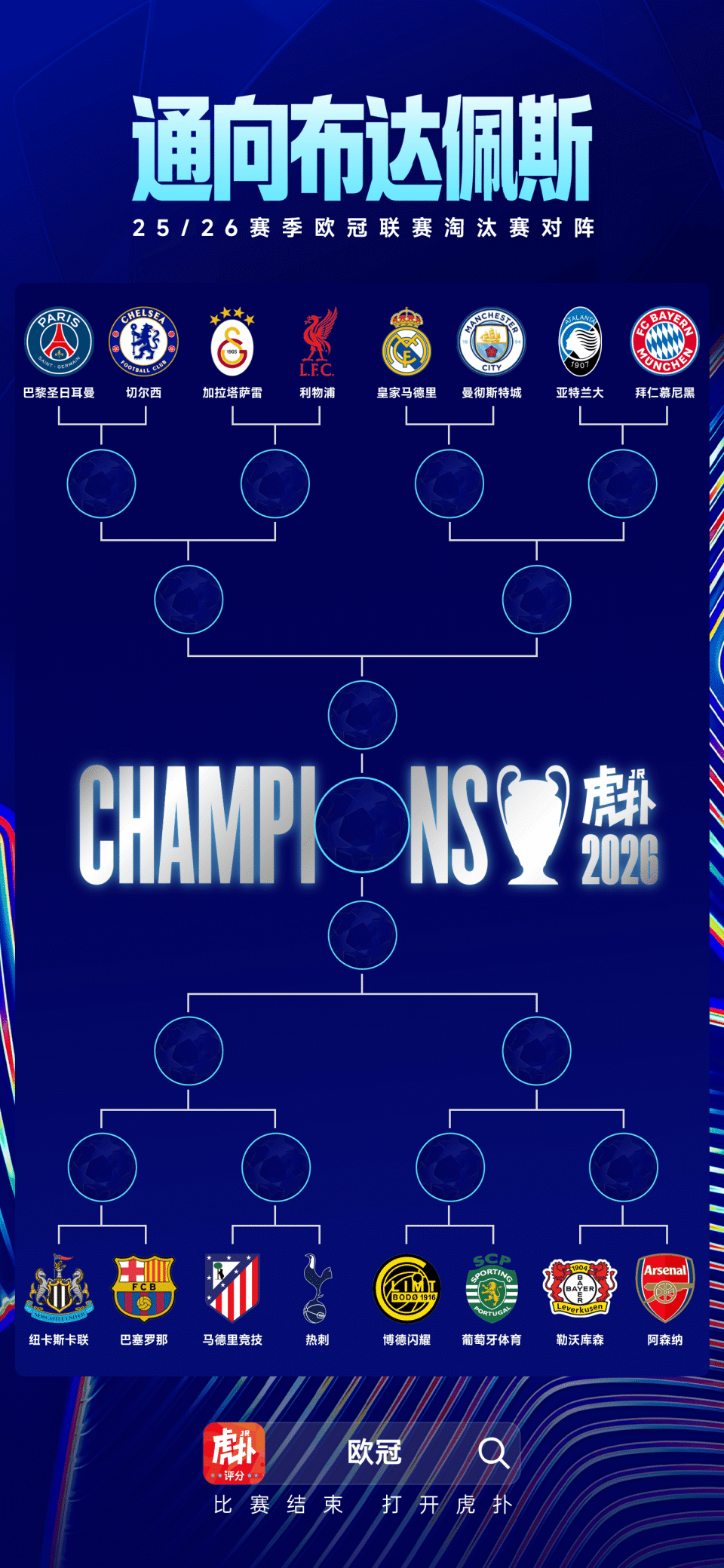 虎扑02月27日讯 2025-26赛季欧冠淘汰赛抽签仪式刚刚结束,淘汰赛对阵已经确定。