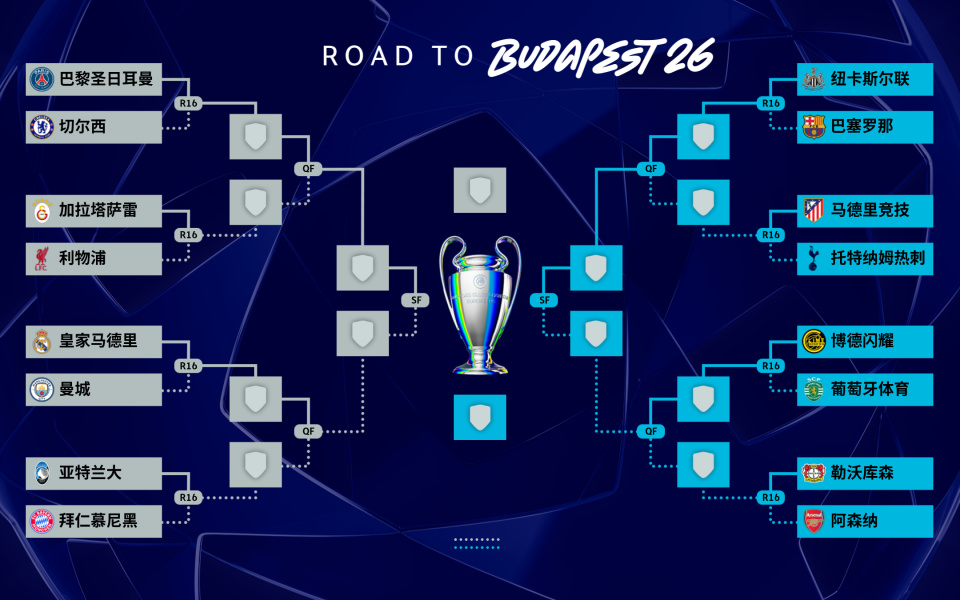 欧冠1/8决赛对阵出炉:皇马遭遇曼城 巴黎将战切尔西
