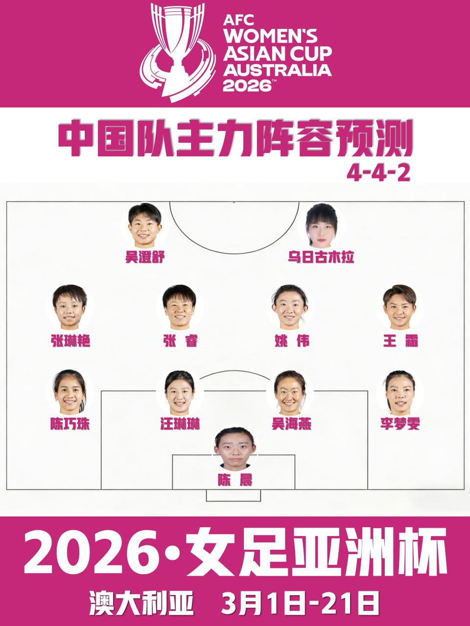 主力阵容预测:442阵型 王霜领衔