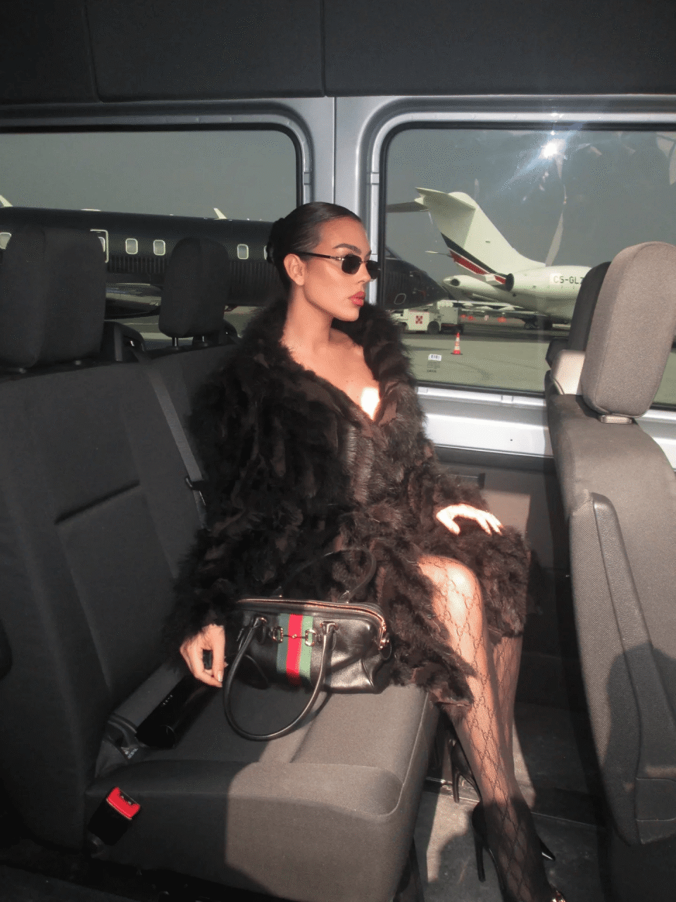 乔治娜去米兰看时装秀,晒机上美照&穿皮草外套展示傲人身材