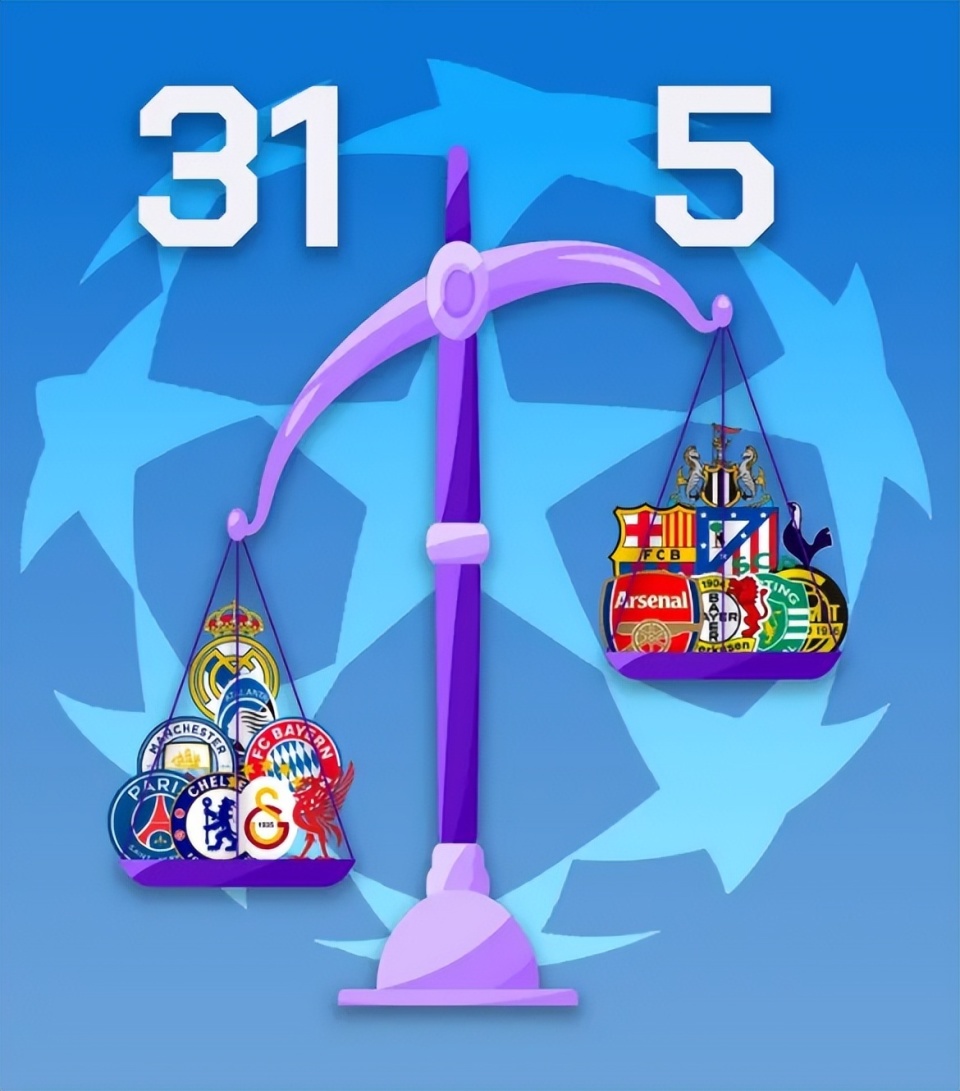 31比5!欧冠16强淘汰赛皇马进“死亡半区”,西甲三强命运天差地别