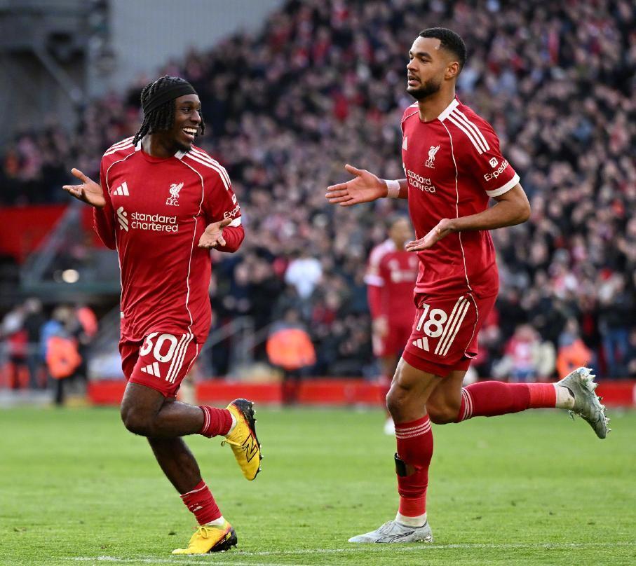 第43分钟利物浦获得右侧角球机会,埃基蒂克后点摆渡给了买卡利斯卡,后者直接凌空抽射建功,将比分改写为了3-0,利物浦也成为了曼联之后,第二支英超单场比赛上半场利用角球打进3球的球队。