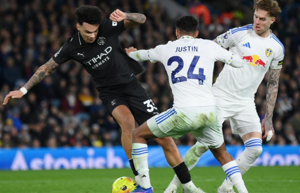 比赛刚刚开始不久,利兹联就创造出了非常好的机会。阿伦森在右侧起球传中,勒温门前大空位包抄射门,竟然踢偏了。曼城逃过一劫。4分钟后,罗德里送出精妙直塞。塞门约前插,在禁区外起脚远射,结果踢飞了。第17分钟,勒温小角度射门偏出右侧立柱。随后,贾斯廷外围起脚远射,力量不足。门将侧扑把球没收。
