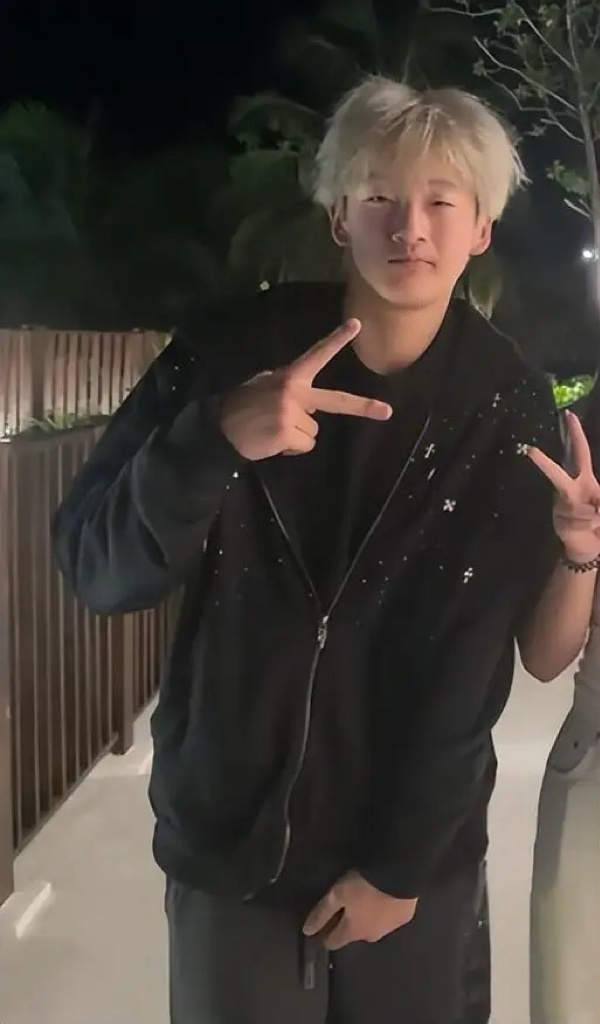轩轩小时候也胖乎乎的,这次遇到他一头黄白、身材也苗条了不少。为了减肥,他格外自律的泡健身房。瘦下来的轩轩,真的是又高又帅,一身黑色look也很酷。