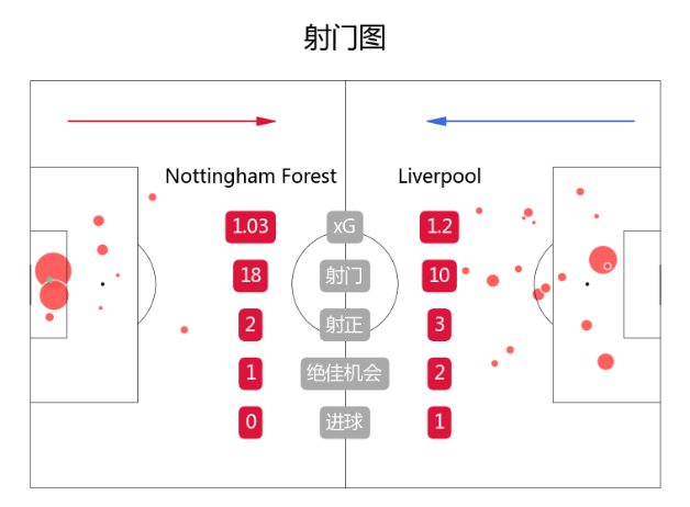其实不仅仅是对阵保级的西汉姆这场,客场侥幸赢下森林的那场同样也是,利物浦的预期进球也仅仅只有1.2——这和森林的1.03的预期进球相差同样不大。