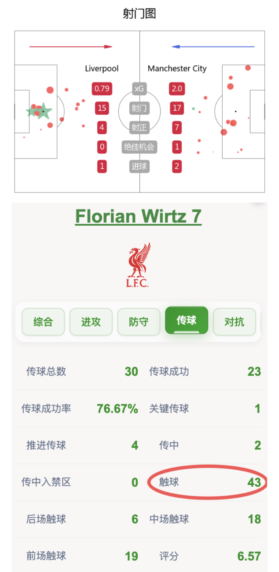 而在维尔茨在场的对阵桑德兰,虽然运动战没有进球,且只有一球小胜,但是这是利物浦最近三场比赛里唯一一场自己的xGA(预期失球)在“1”以内的同时,预期进球在“2”以上的比赛:
