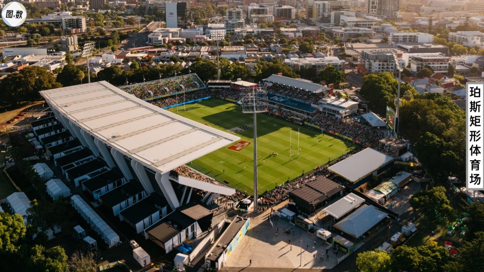 可容纳约6万人的珀斯体育场是一座椭圆形的板球场,它在日常主要进行板球和澳式足球的比赛,澳式足球也被称为澳式橄榄球,每队18人上场比赛,队员众多,因此需要使用更大的椭圆形赛场。
