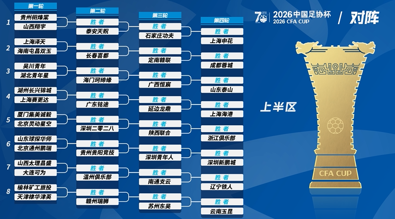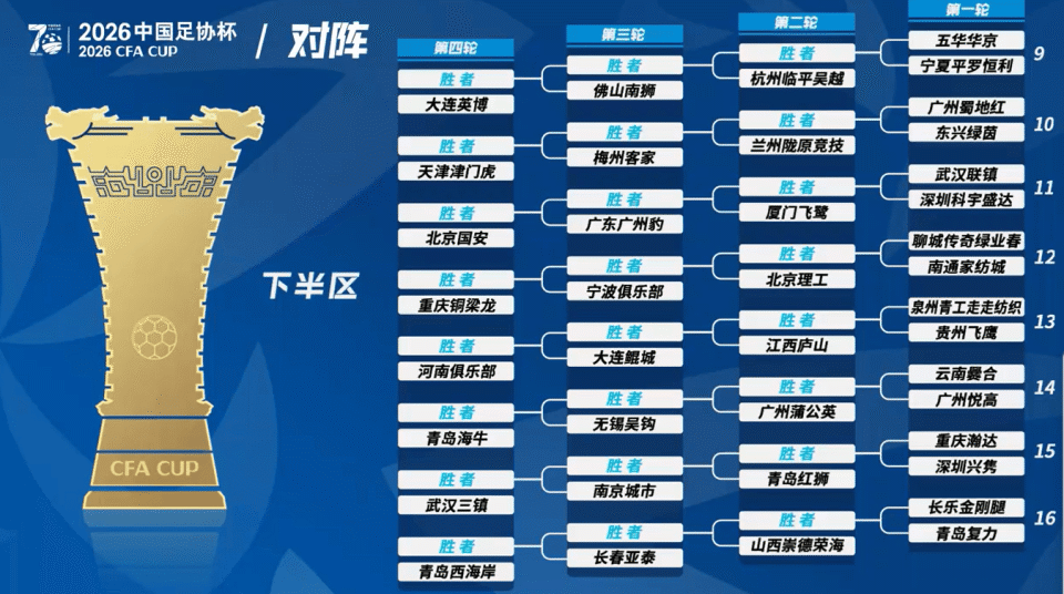 足协杯前4轮抽签:上半区强队如云,亚泰或踢遇西海岸