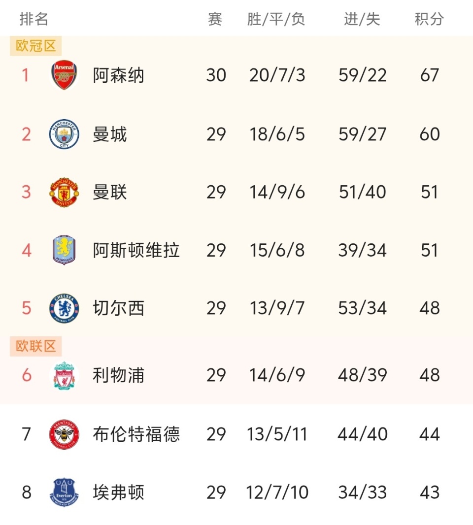 随着曼联1-2被绝杀、阿森纳赢球,英超最新积分榜:阿森纳坐稳第一!