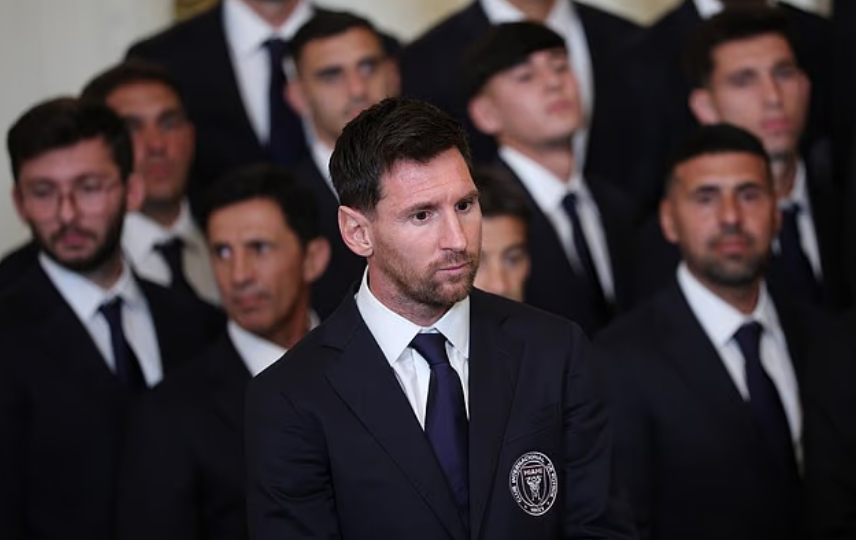 接见刚开始,特朗普表彰迈阿密国际队上赛季夺得队史首座美职联杯冠军。起初画风还算正常,特朗普称赞梅西是“伟大的冠军”,并透露自己的儿子巴伦是梅西的铁杆粉丝,这让梅西露出了礼貌的微笑。