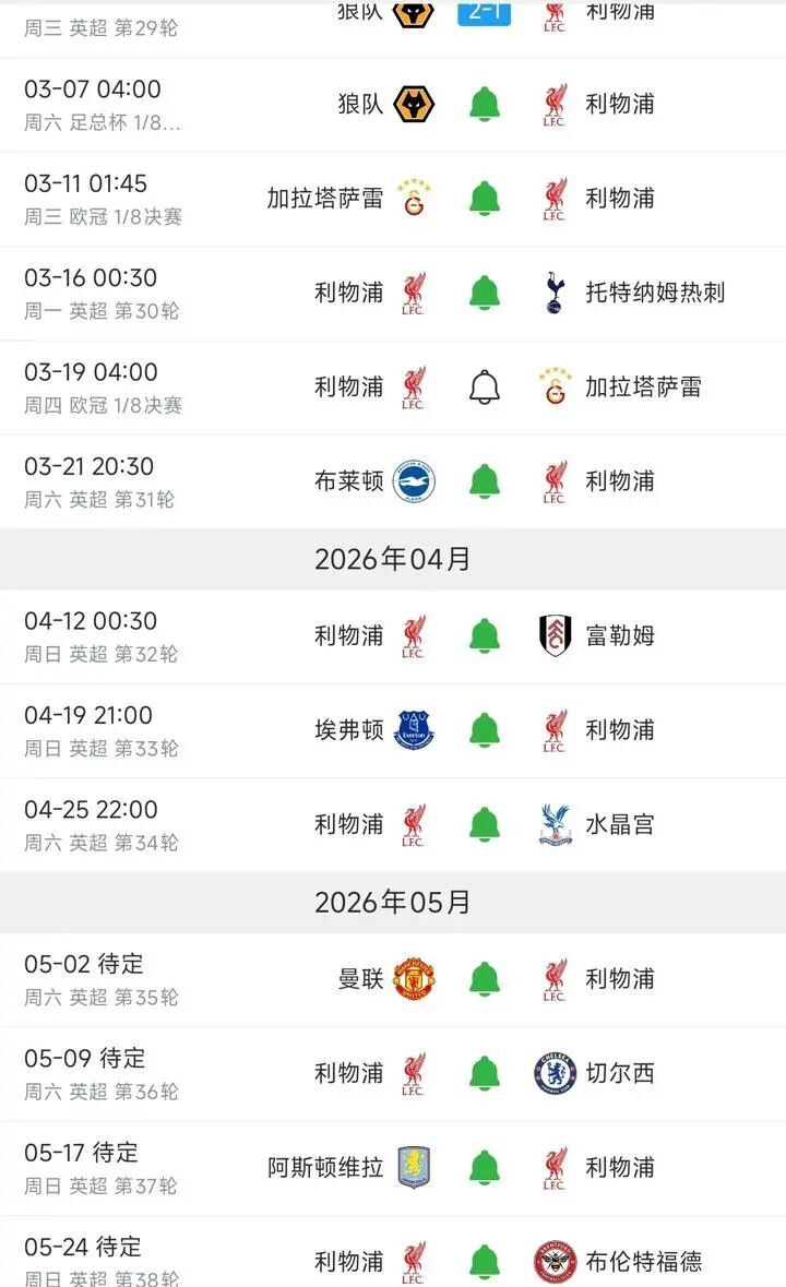 下面说说利物浦和切尔西吧。由于曼联和维拉的情况上面已经说完,所以我认为这个赛季利物浦和切尔西其实都会“无风险”进入下赛季欧冠,现在无非是谁第四、谁第五的问题。