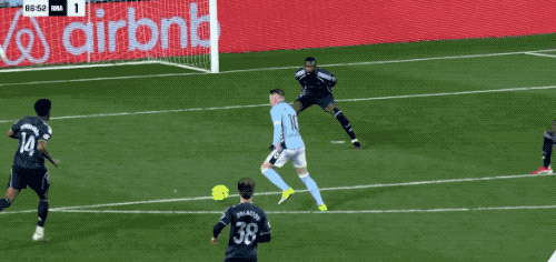 第94分钟,皇马发动最后的进攻,阿诺德的传中被挡出,巴尔韦德的射门打在防守球员的身上产生折射,皮球直挂死角。