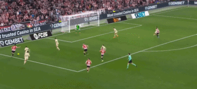 第34分钟,拉什福德左路直塞,坎塞洛内切摆脱,可惜趟球力量太大,随后勉强射门没能打上力量,乌奈-西蒙将球没收。