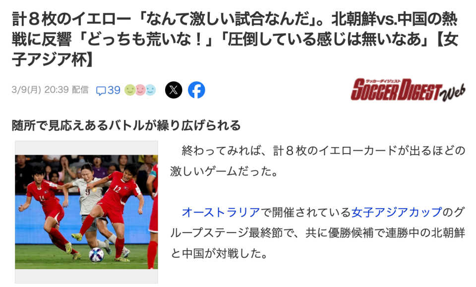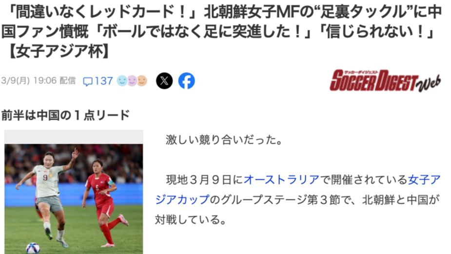 日本多家媒体关注中朝大战,日本网友:中国女足比男足踢得干净利落