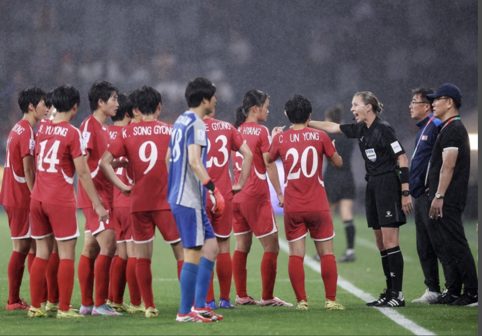 朝鲜女足抗议裁判判罚