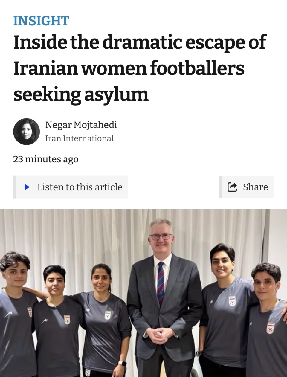最终,有7名球员成功留在澳大利亚,GoFundMe活动已经启动,以帮助他们在澳大利亚重建生活。布里斯班咆哮足球俱乐部也公开表示支持,并向球员们发出了直接邀请:“致Fatemeh、Zahra、Zahla、Atefeh、Mona以及在澳大利亚建立新生活的任何队友:布里斯班是澳大利亚最具激情的足球社区之一,我们很荣幸能敞开大门,为您提供一个训练、踢球和归属的地方。昆士兰现在是你的家。”