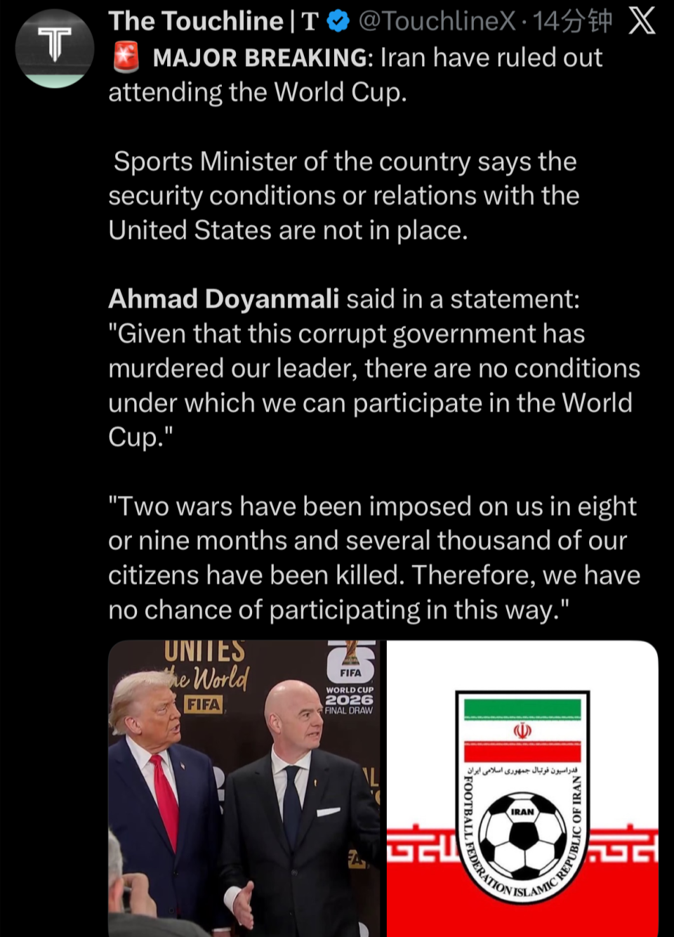 距开赛仅92天,伊朗体育部长:绝无可能参加世界杯!或遭FIFA禁赛