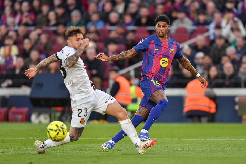 本赛季,拉什福德代表巴萨出场38次,首发21次,完成10球11助攻,造21球。