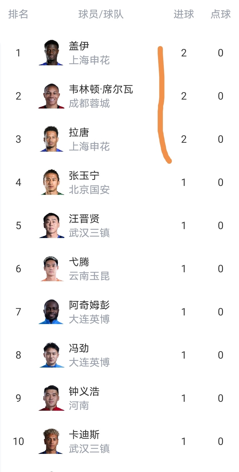 射手榜可以看到3人进球2个,多人进球1个。