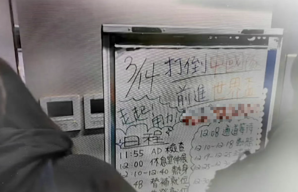 尽管历史上从未赢过中国女足,但中国台北队在赛前期待能在今日创造历史。网络上,有网友曝光了中国台北队更衣室内部的小白板内容。在白板上,中国台北队写下如此标语:“打倒中国队,前进世界杯。”