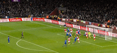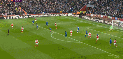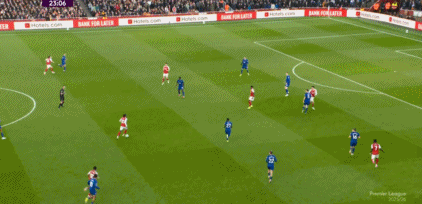 第13分钟,赖斯左肋挑传禁区,萨卡后点近距离头球攻门被门将扑出,边裁同时举旗示意越位在先。