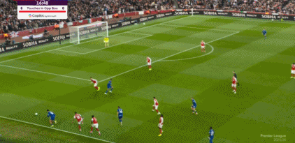 第24分钟,埃泽推进中突然送出直塞,哈弗茨禁区内突破,在对方逼抢下倒地,主裁判没有表示。