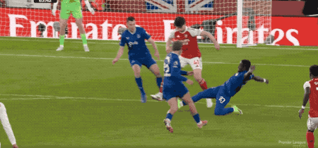 5分钟后,赖斯插上和萨卡打出配合后突入禁区,加纳做出关键铲球,将球拦下。