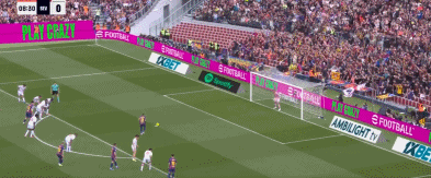 第9分钟,坎塞洛禁区内被索乌放倒,主裁判罚点球,拉菲尼亚主罚踢出勺子点球,1-0。