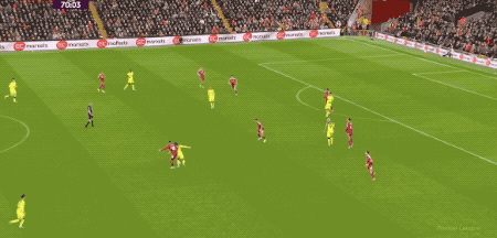 第70分钟,加克波用不停的跑动和对抗赢下球权,反击过程中的外脚背传球也恰到好处,可惜萨拉赫的传中力量有些大,埃基蒂克没能碰到皮球。