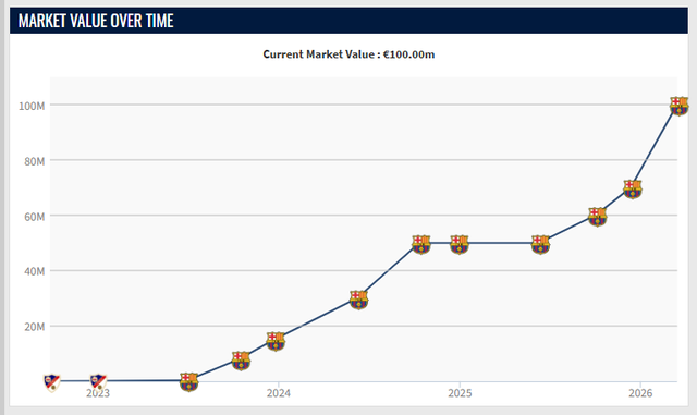 过去3年,费尔明的身价爆发式增长:
