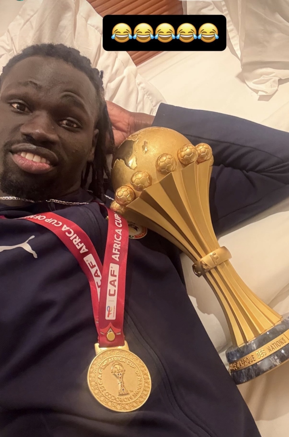 而这一重磅决定,也引发了足坛轰动。作为当事人,两位塞内加尔国脚帕特·西斯更新社媒,晒出了非洲杯冠军奖杯和奖牌的合照,配上了一串“笑话”的表情。