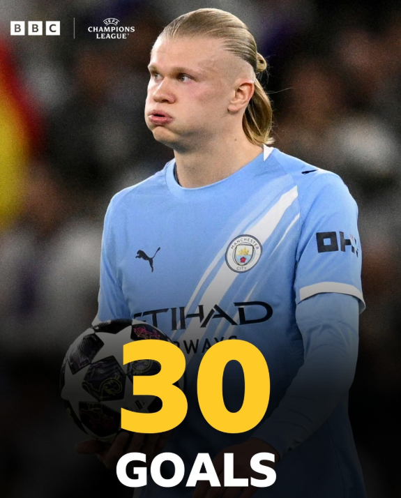 这也是哈兰德时隔一个多月终于破门,本赛季各项赛事进球数达到30个。