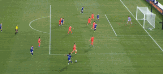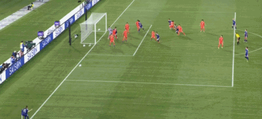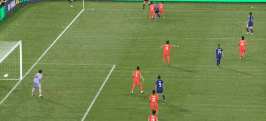 第78分钟,韩国队朴洙正右路送出传中,姜綵林大禁区线内一步停球后劲射球门右侧死角得手,韩国1-3扳回一球,这也是日本队在本次亚洲杯上的首个丢球。