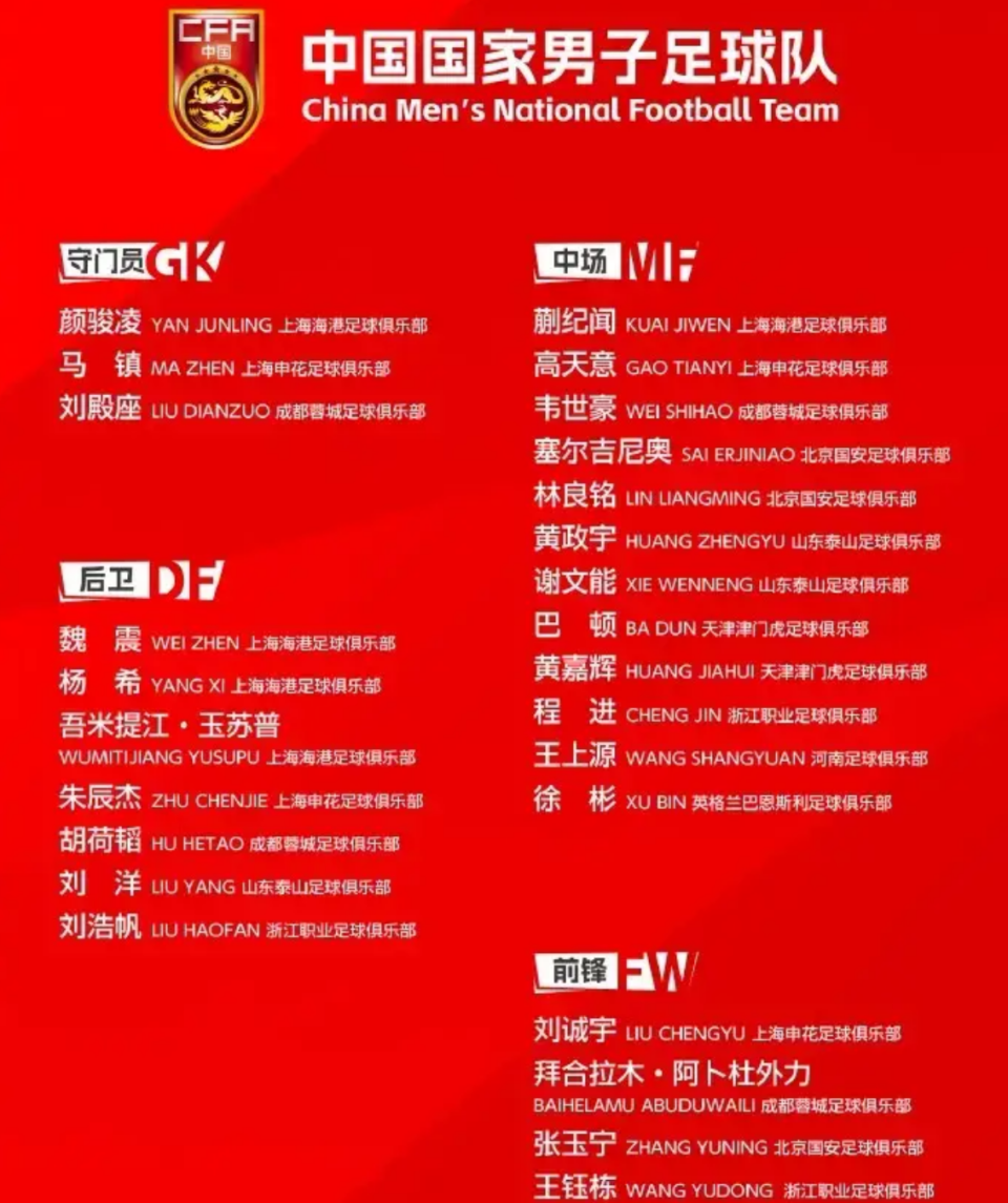 邵佳一公布国足名单,带了4名前锋+没选武磊,李昊落选原因揭晓