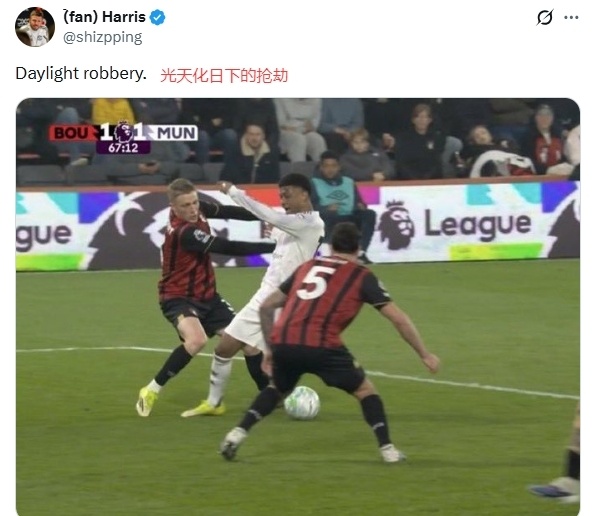 两次遭不利判罚!曼联球迷怒冲英超官推:公开抢劫,主裁该被禁赛
