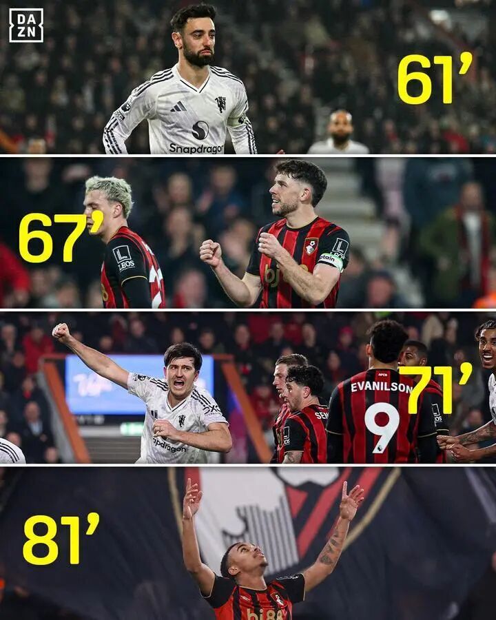 1-1后不久,曼联又凭借角球制造了伯恩茅斯乌龙,2-1再度领先。