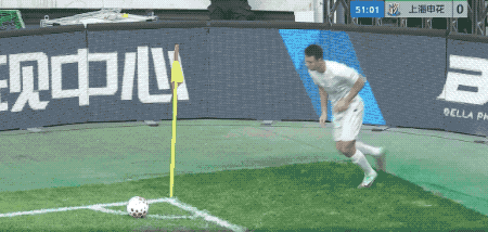 第50分钟,申花的角球几经波折终于开出,陈晋一在贾非凡的干扰下回头望月,皮球击中边网。