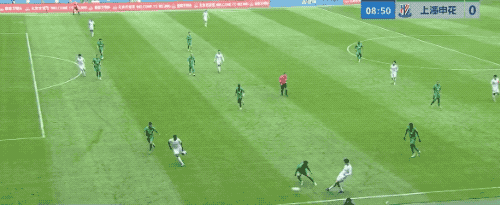 第35分钟,申花开出角球,朱辰杰头球摆渡,拉唐跑过了,错失良机。