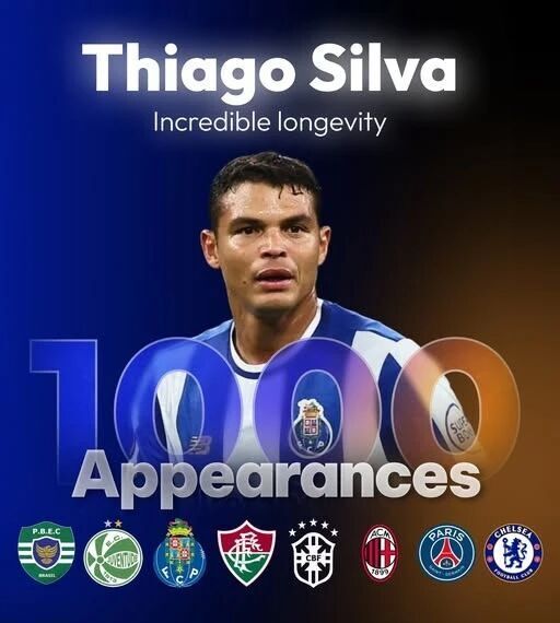 蒂亚戈·席尔瓦——在41岁的年纪,踢到了职业生涯第1000场比赛。