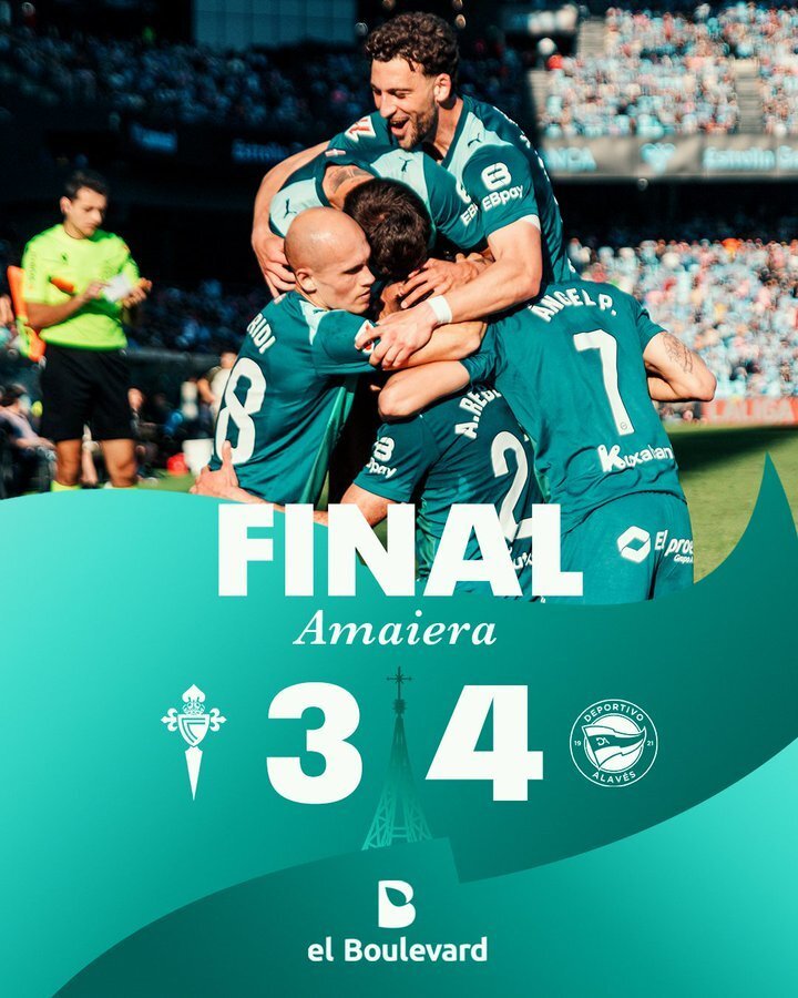 下半场阿拉维斯完全将比赛纳入自己的轨道,先是马丁内斯在第50分钟送出助攻帮助佩雷斯取得进球,随后阿拉维斯在第74和第78分钟连续打进2球,马丁内斯打进关键的扳平进球,而替补登场的雷巴赫则是将比分超出,阿拉维斯全队都有超水平发挥,门将西维拉在补时阶段还扑出了必进球,最后的比分是3-4,阿拉维斯拿到了想要的结果。