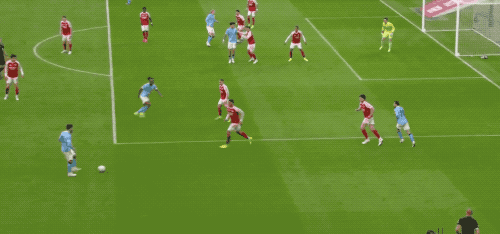 第87分钟,热苏斯头球吊射,皮球越过特拉福德头顶,砸在横梁上。