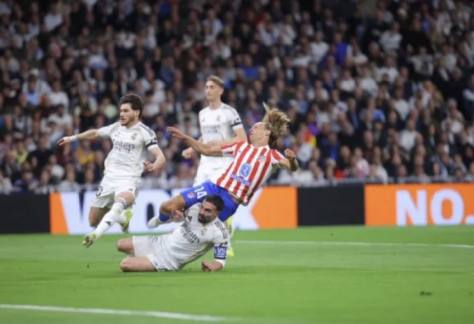 1,皇马球员卡瓦哈尔腾空飞踢马竞球员,裁判没给犯规。