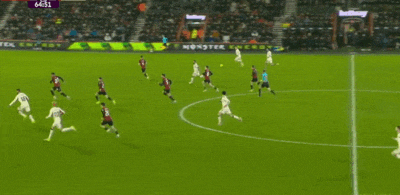 如果仔细观察伯恩茅斯球员,在维尔茨犹豫的这几秒钟里,他们迅速完成了回追落位,收缩了防线间距。原本开阔的防守空当被迅速填补,瞬间形成了局部的防守包围圈。