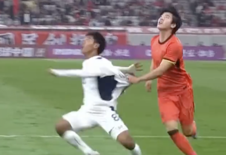 而在仅仅13分钟后,中国队再丢1球。第36分钟,泰国队右路长传,想找左路的球员差万威-社劳。中国队球员鲍世蒙本可以轻松解围这球,但他的头球解围没有顶远,皮球见高不见远,正好帮助对手停下了皮球。